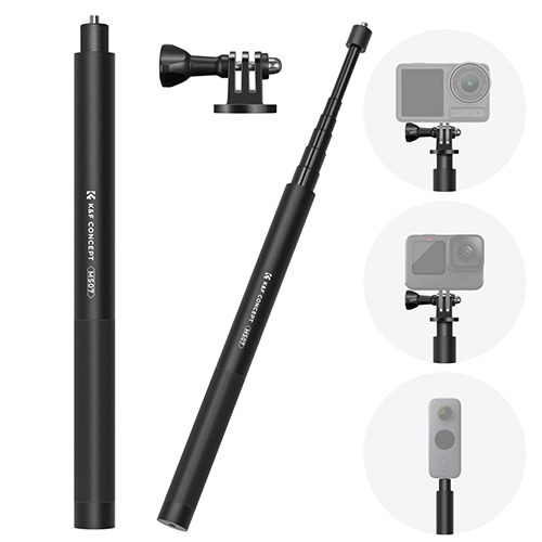 K&F Concept 153cm metal extension pole MS07, 14 adapter, equipped with GoPro adapter, compatible with GoPro, DJI Action, Insta360