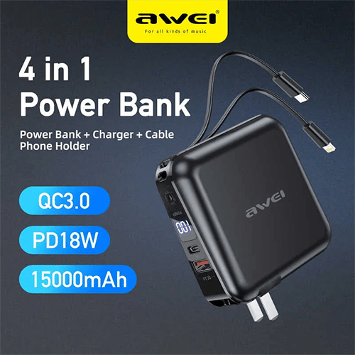 Awei P48K 4 In 1 Portable Multifunctional 15000mah Power Bank And Charger